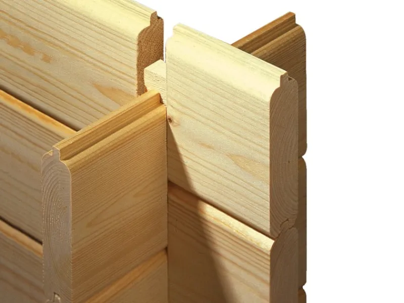 Das Gartenhaus ist in Blockbohlenbauweise aus unbehandeltem Holz gefertigt. Durch die naturbelassene Oberfläche bleibt eine natürliche Optik mit Holzmaserung erhalten. Zum Schutz vor Witterungseinflüssen sollte die Oberfläche individuell mit einer Lackierung oder Lasierung veredelt werden. Das Gerätehaus verfügt über eine robuste Konstruktion, mit einer Wandstärke von 28 mm. Die maximalen Schneelast des Satteldachs liegt bei 76 kg/m. Die Dacheindeckung ist separat erhältlich.