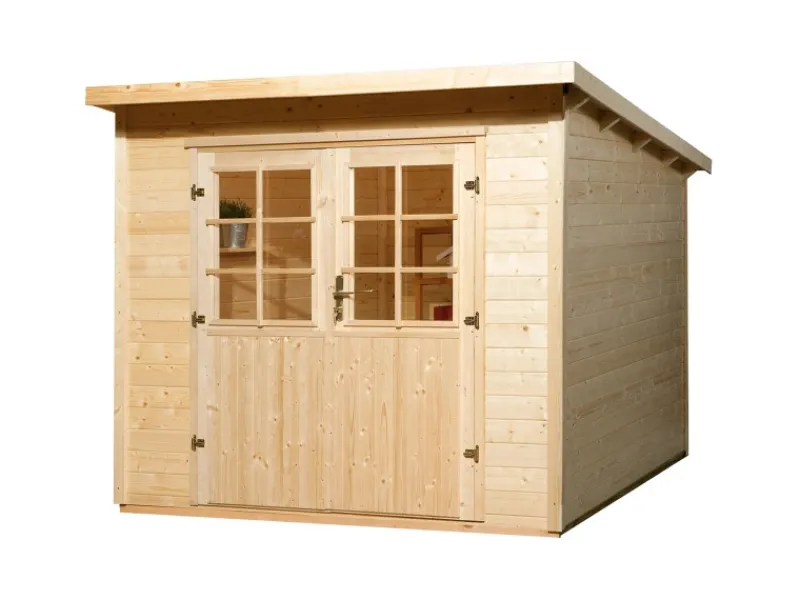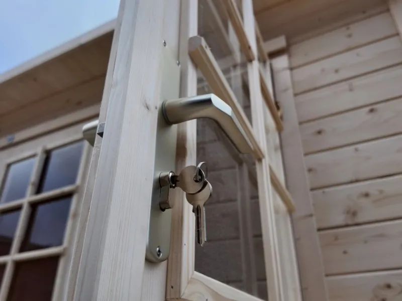 Für ausreichend Sicherheit für die in Ihrem Gartenhaus gelagerten Utensilien, ist dieses mit einem Profilzylinder-Schloss ausgestattet. Somit verwehren Sie ungewolltem Besuch den Zugang. Die Türen verfügen über Fenster, die für ausreichend Tageslicht im Innenraum des Gartenhauses sorgen.