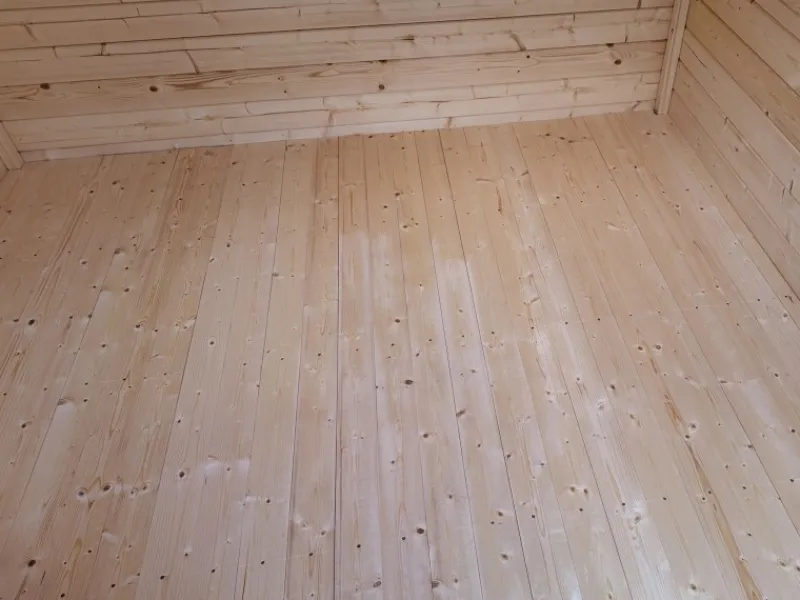 Der Massivholzboden aus 16 mm starken Bodendielen mit Nut und Feder ist im Lieferumfang enthalten.