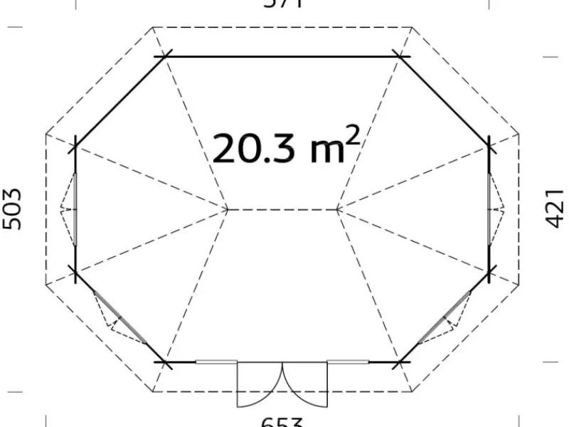 Palmako Holz-Pavillon Hanna 20,3 m² aus 44 mm Blockbohlen mit winddichter Chaletschnitt-Eckverbindung und werkseitig vorgefertigten Dachelementen für einfache Montage. Die stabile, teilverglaste Doppeltür mit Leimholzrahmen und Zylinderschloss hat eine niedrige, mit Edelstahl abgedeckte Türschwelle. Die Doppeltür mit Seitenelementen und die nach außen öffnenden Doppelfenster haben Gummidichtungen, Doppelverglasung und aufgesetzte Sprossen. Zum Bausatz gehören auch imprägnierte Fundamenthölzer, vorgefertigte Dachelemente aus 16 mm Dachbrettern, 19 mm Fußbodenbretter mit Nut und Feder, Sturmleisten, sowie Montageset.Der Pavillon ist bereits mit einer Tauchgrundierung versehen und kann nach dem Aufbau mit allen handelsüblichen Farben weiterbehandelt werden. Dacheindeckung ist nicht im Lieferumfang enthalten.