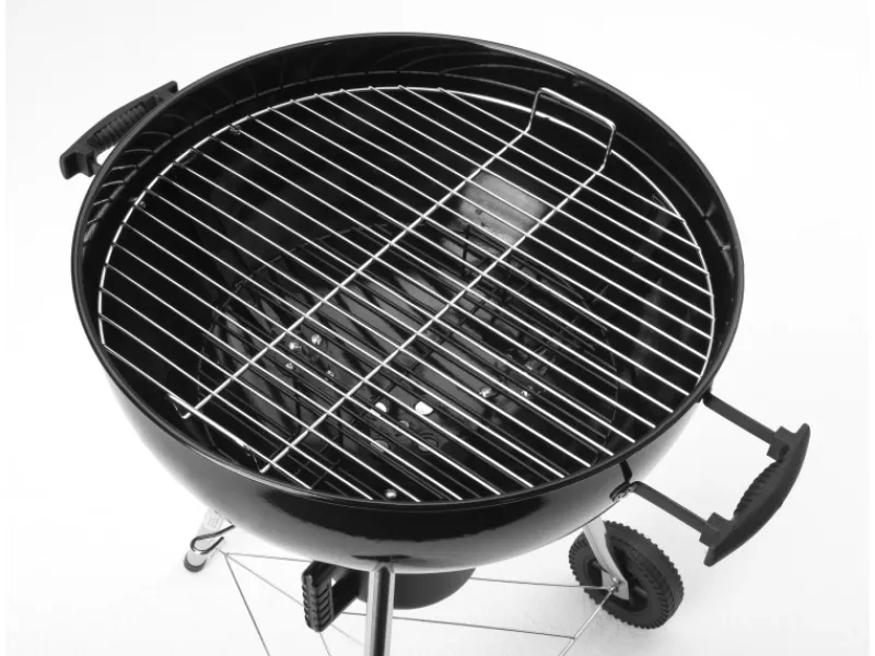 Der Grillrost ist verchromt und hat zwei Griffen die ein einfaches Anheben zum Nachlegen der Holzkohle ermöglichen. Sowohl Feuerschale, Deckel als auch der Kohlerost sind emailliert. Im Deckel sind zudem Lüftungsregler integriert, die für eine optimale Hitzezirkulation sorgen. Der Deckel kann komfortabel am Grill eingehakt werden damit, die Hände beim Grillen frei bleiben. Die drei Stativbeine sorgen für einen immer sicheren Stand des Grilles.