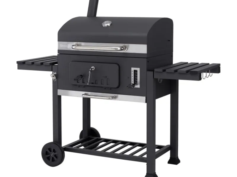 Der Tepro Grillwagen Toronto XXL bietet eine Bandbreite von Grillmöglichkeiten und macht jeden Ihrer Grillabende zu einem Event. Der im amerikanischen Stil anmutende Wagengrill zeichnet sich durch eine stufenlos höhenverstellbare Kohleebene aus. Durch einfaches Kurbeln kann so die optimale Steuerung der Grilltemperatur erfolgen. Je nachdem, wie weit die Glut vom Grillrost entfernt ist, verändert sich die Temperatur am Grillgut. Der zweigeteilte Grill ermöglicht das Schließen des Grillbereiches mit dem Vorteil, dass die Hitze nicht so leicht nach oben entweichen kann. Somit gibt der Deckel die gebündelte Hitze im Inneren an die Grillware ab. Ähnlich wie beim Umluftherd, wird das Grillgut bei diesem Vorgang von allen Seiten gleichmäßig gegart. Durch den zweigeteilten Grillrost und dem leichtgängigen Deckel steht auch der indirekten Grillmethode, bei der das Grillgut im geschlossenen Raum liegt und nicht direkt über der glühenden Kohle platziert ist, nichts im Wege.