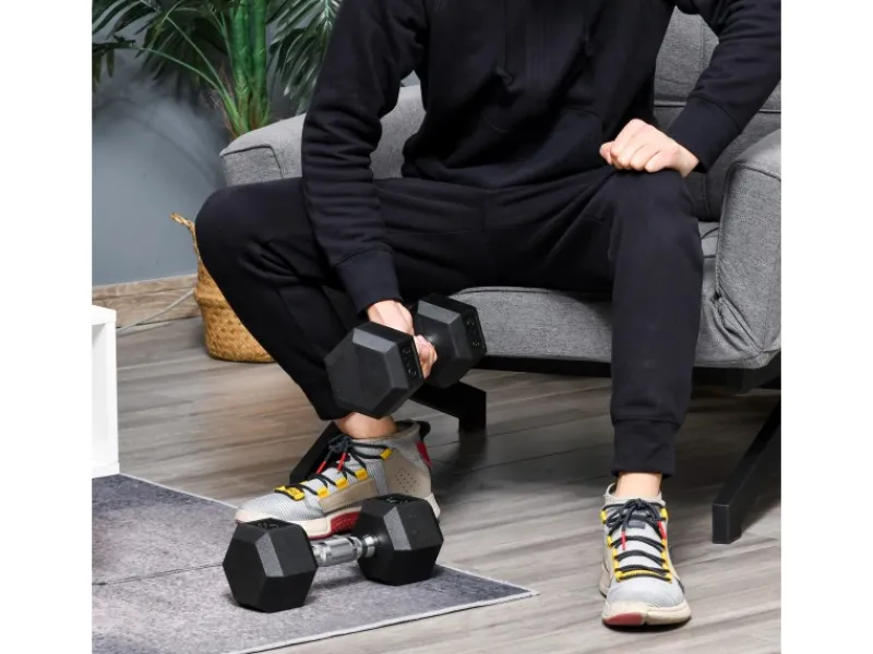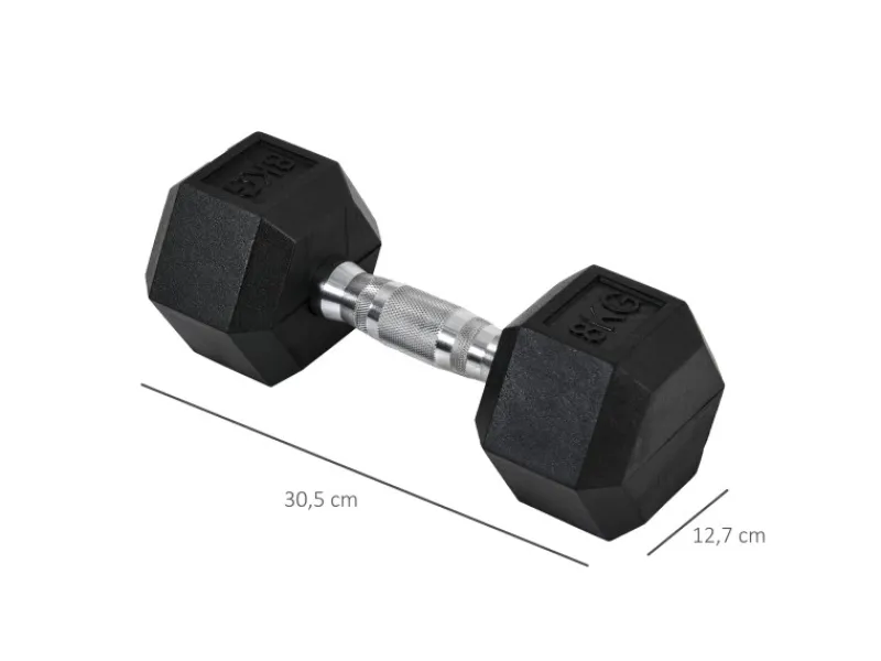 HOMCOM Fitnessgeräte|Hexagon Gummi-Hantel Griff Gerändelt Gewichte Metall Gummi Schwarz 2x8Kg