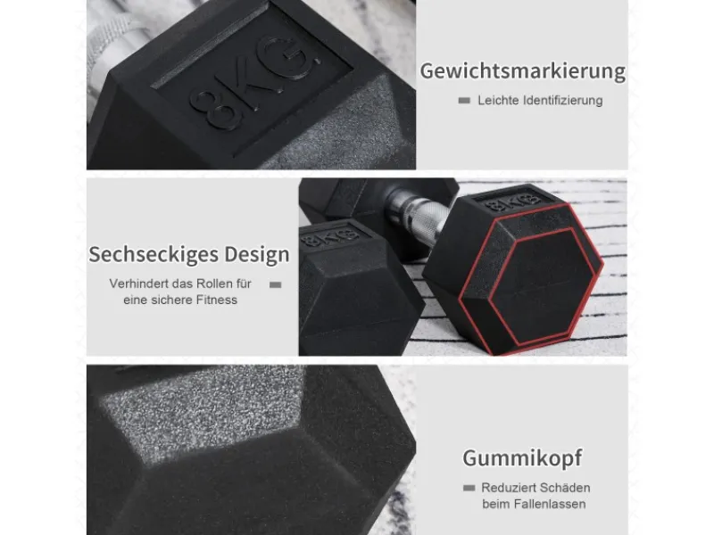 Gewicht von Hanteln 2 x 8 kg Länge der Griffe 12,8 cm Sechseckgröße Ø12,7 cm Diagonale