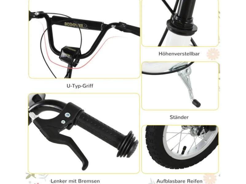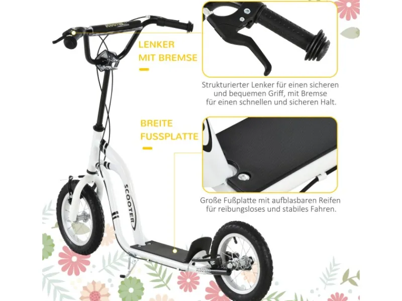 Dieser Tretroller von HOMCOM bietet Fahrspaß auf höchsten Niveau! Aufblasbare Reifen sorgen für eine reibungslose Fahrt. Ein Doppelbremssystem erleichtert das Bremsen. Durch sein leichtes Gewicht lässt er sich gut transportieren, wenn er nicht im Gebrauch ist. Mit diesem Tretroller von HOMCOM werden ihre Kinder es lieben mehr Zeit im Freien zu verbringen.