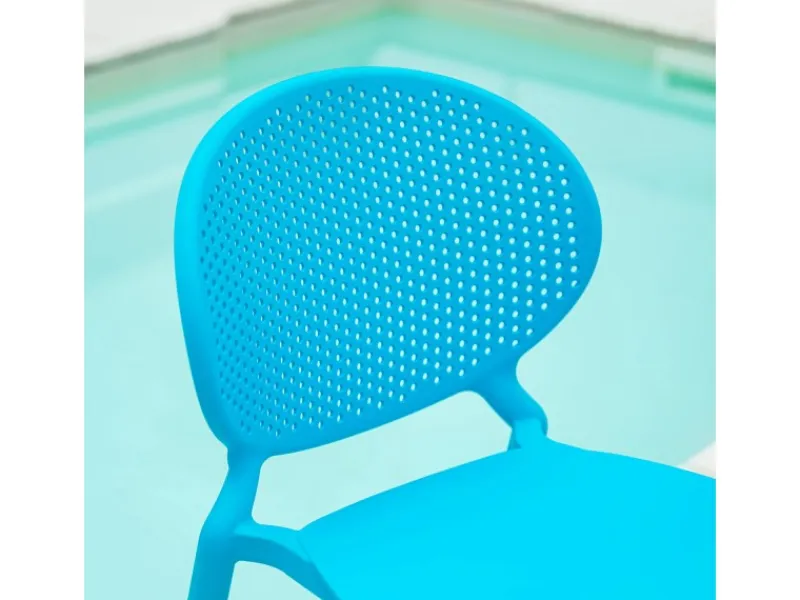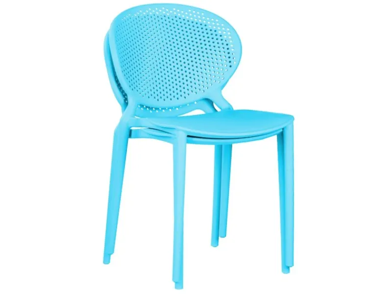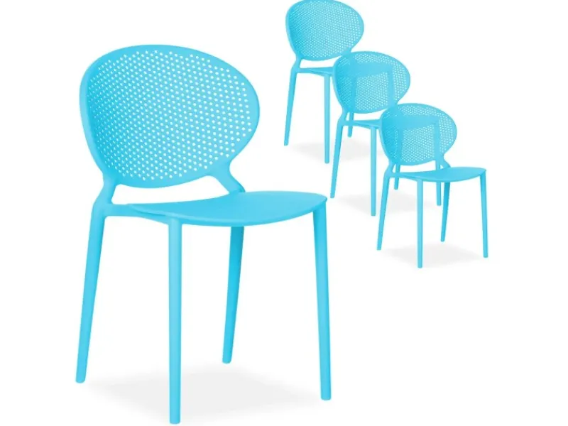 4 moderne Terrassenstühle aus Kunststoff, hellblau