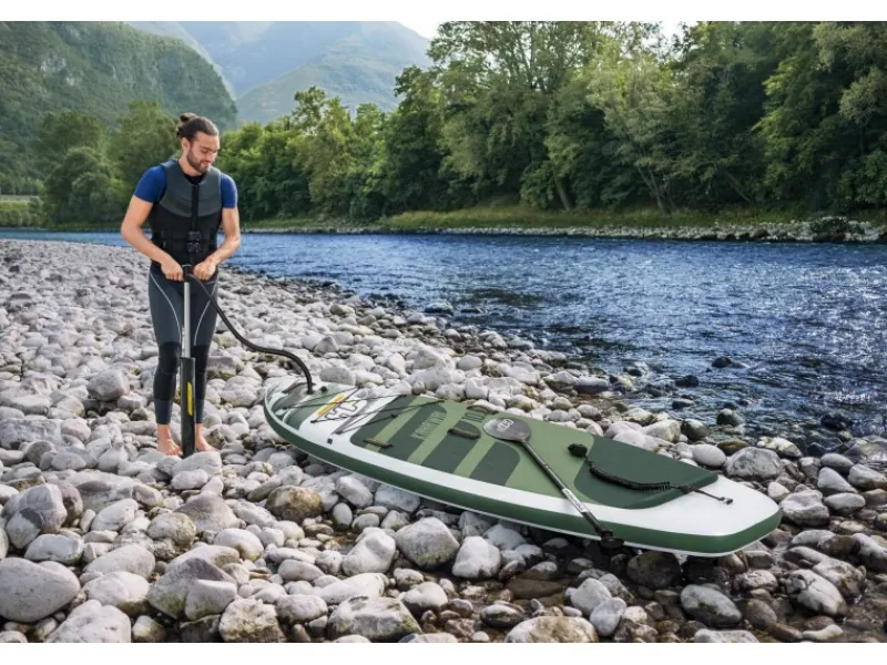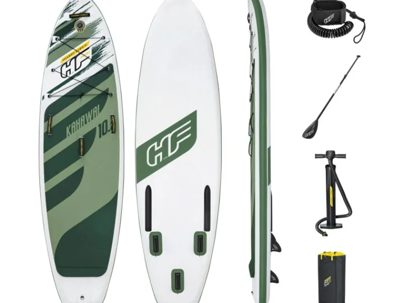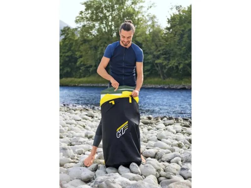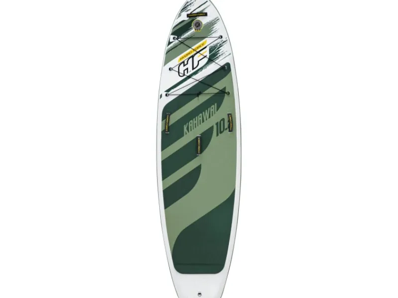 Wenn es losgehen soll, blasen Sie das Board mühelos mit der enthaltenen Handluftpumpe auf und schon sind Sie bereit für einen denkwürdigen Tag auf dem Wasser! Mit dem aufblasbaren Board genießen Sie den Vorteil, es überallhin mitnehmen zu können – zum See, zum Meer oder zum Fluss. Wenn Sie genug haben, können Sie die Luft über das Ventil im Handumdrehen aus dem Board lassen. Rollen Sie das Kahawai dann einfach wieder auf und verstauen Sie es in der Reisetasche – schon sind Sie startklar.
