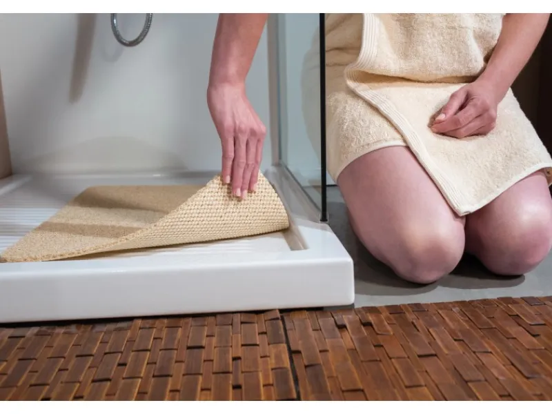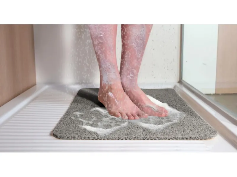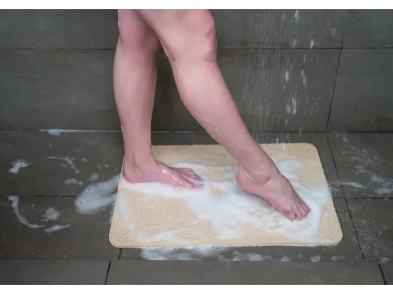 Hydrowonder Duschmatte 40 x 60 cm gefertigt aus einem geflochtenem Material, dass das Wasser durchfließen lässt. Sie ist geeignet zum Reinigen der Füße und ganz leicht zu Trocknen.