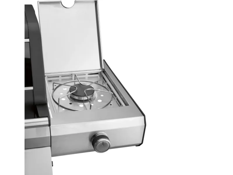Die kleine Grillstation ist mit einem Seitenbrenner zur Zubereitung von Beilagen sowie einem Infrarot-Seitenbrenner Devil’s Burner versehen, der das scharfe Angrillen von Steaks ermöglicht. Mit Temperaturen bis zu 800 °C werden die Steaks außen kross und bleiben innen schön saftig.