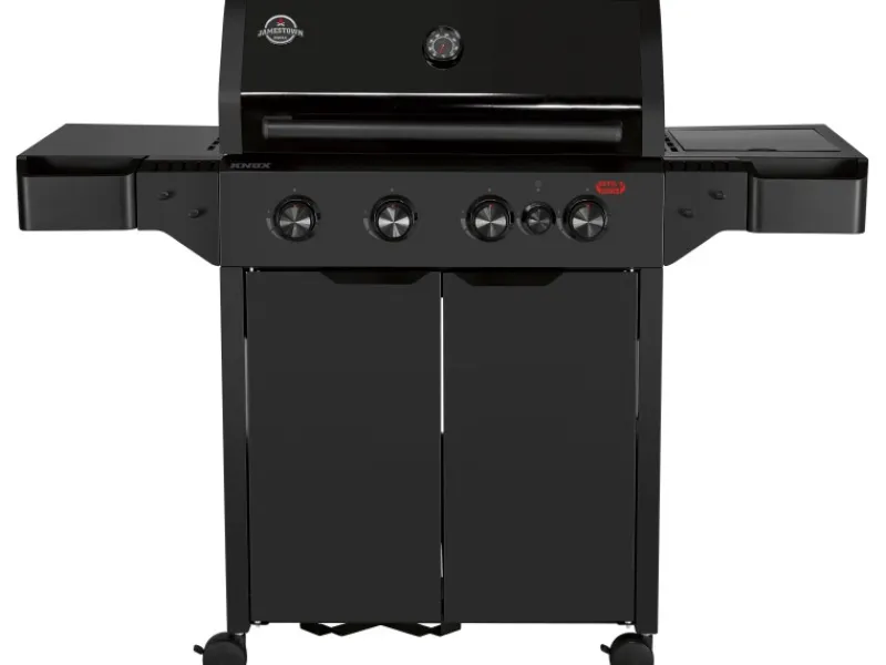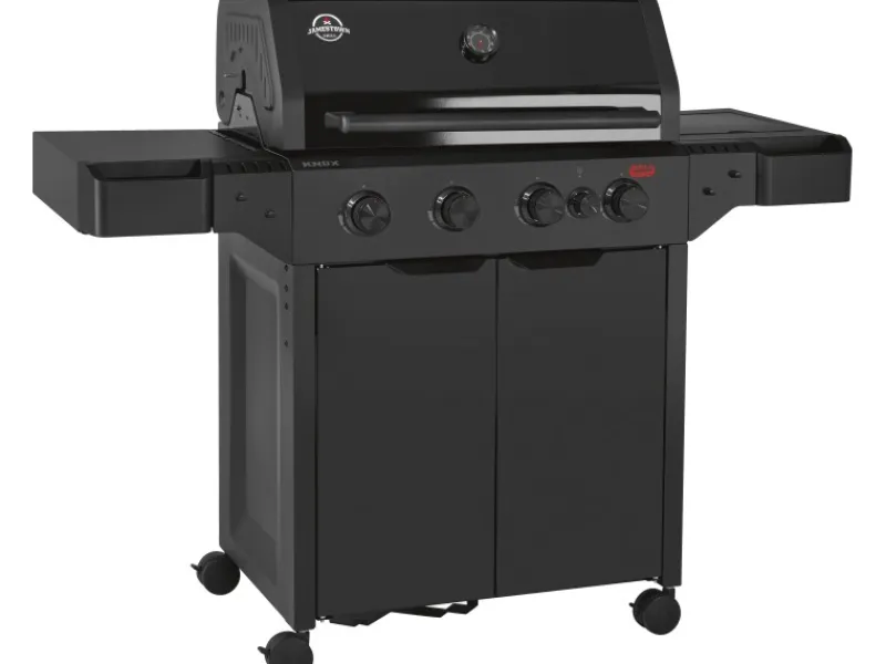 Der Jamestown 4-Brenner Gasgrill Knox II punktet mit einer großzügigen Grillfläche von 74 cm x 43 cm und robusten Grillrosten aus Gusseisen, die ideal für gleichmäßige Hitzeverteilung sind. Das pulverbeschichtete Stahlgehäuse und der Deckel mit integriertem Thermometer sorgen für Langlebigkeit und präzises Grillen.