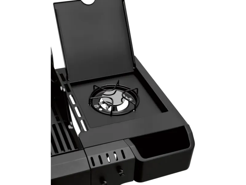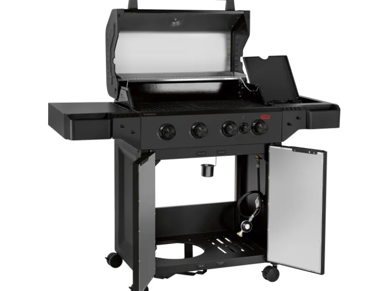 Mit 4 separat regelbaren Edelstahlbrennern und einer beeindruckenden Gesamtleistung von 14,7 kW bietet der Gasgrill vielfältige Zubereitungsmöglichkeiten. Dank der Devil’s Zone erreichst du Spitzentemperaturen von bis zu 800 °C – ideal für eine perfekte Steak-Kruste. Ein gasbetriebener Seitenbrenner erweitert deine Kochmöglichkeiten, etwa für Saucen oder Beilagen.
