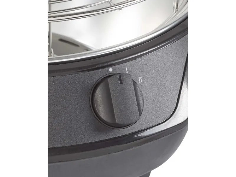 Der elektrische Jamestown Tischgrill Cody mit Anti-Rauchsystem ist bequem tragbar und sorgt auch auf kleinem Raum für ausgelassenes Grillvergnügen. Der Elektrogrill überzeugt mit einer Leistung von bis zu 1.400 W und Infrarotfunktion, wodurch Ihr Grillgut auf dem Edelstahl Grillrost mit einer Fläche von Ø 35 cm gleichmäßig und schonend gegart wird. Zudem besitzt der Jamestown Tischgrill einen 2-Stufen-Regler und eine herausnehmbare und abwaschbare Aluminium Box. Die Kabellänge für den Stromanschluss beträgt 1,5 m.