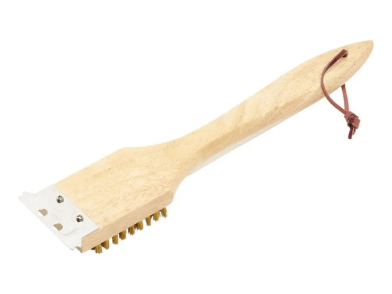Mit der praktischen Jamestown Grillbürste bekommst du deinen Grill ruckzuck wieder sauber. Die stabilen Messingborsten entfernen selbst hartnäckigste Verschmutzungen. Und mit dem integrierten Edelstahlschaber kannst du auch festgebrannten Resten zu Leibe rücken. Der Griff der Bürste besteht aus stabilem Holz. Damit du sie platzsparend aufhängen kannst, ist eine Lederkordel am Griffende angebracht.