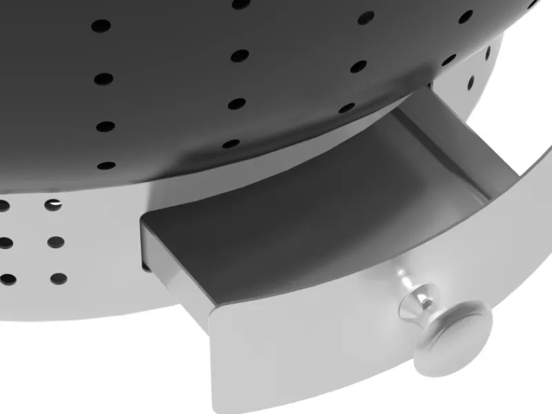 Der Grillrost ist ebenfalls aus verchromtem Stahl gefertigt und damit robust und stabil. Mit einer Grillfläche von 38 cm im Ø muss sich der Tischgrill keineswegs verstecken. Über die praktische Ascheschublade entsorgst du Asche einfach, schnell und sauber.