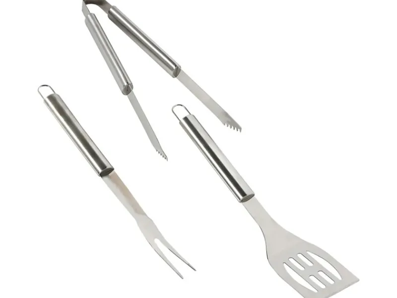 Mit dem 3-teiligen Jamestown Grillbesteck aus rostfreiem Edelstahl bist du bestens für ein erfolgreiches Barbecue ausgerüstet. Das Set besteht aus einem Grillwender, einer Grillgabel sowie einer Grillzange. Mit dem 42 cm langen Wender kannst du Fleisch, Hamburger, Gemüse oder auch mal ein Spiegelei umdrehen. Die 42 cm lange Gabel dient dem Wenden und Aufspießen des Grillguts. Dank der Zahnung der 38 cm langen Zange kannst du verschiedenste Lebensmittel sicher aufnehmen und festhalten. Das Grillbsteck besitzt außerdem Aufhängeösen, sodass es sich platzsparend aufhängen lässt.