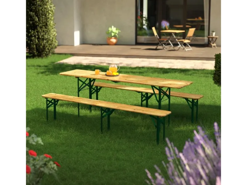 3-teilige Garnitur: 220 cm Tisch & 2 Bänke für 6–8 Personen – ideal für Garten, Party & andere Feste