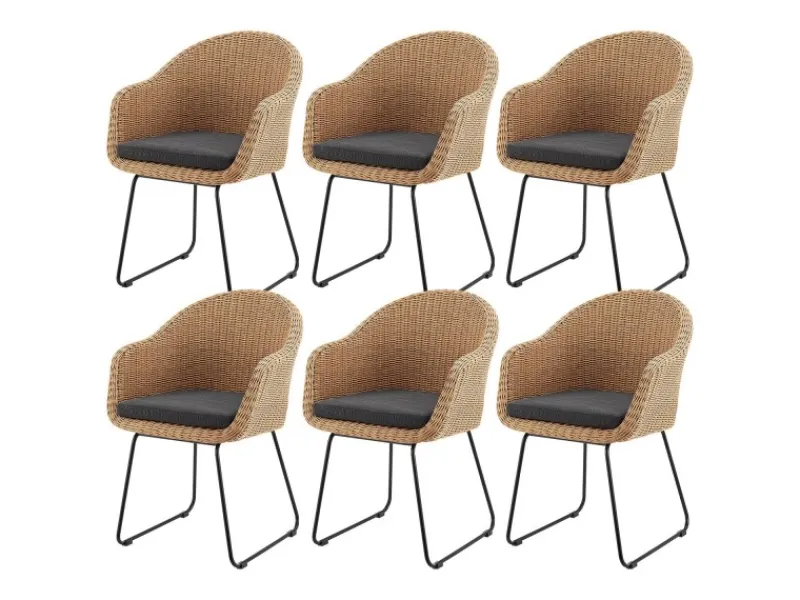 Im Set erhalten Sie nicht nur Rattanstühle, sondern auch dicke Sitzkissen aus Stoff. Diese ermöglichen Komfort und ein harmonisches Erscheinungsbild.