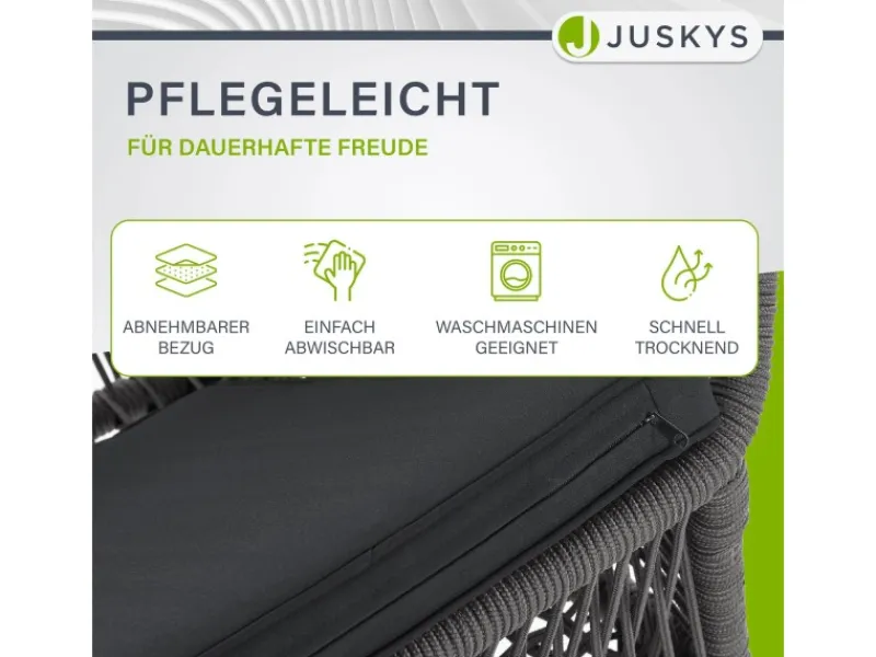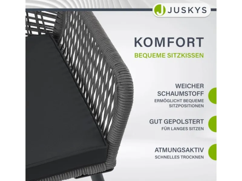 Das elastische Rope Seilgeflecht sieht nicht nur hübsch aus, sondern sorgt zusammen mit der Armlehne und dem dicken Polster für hohen Sitzkomfort.