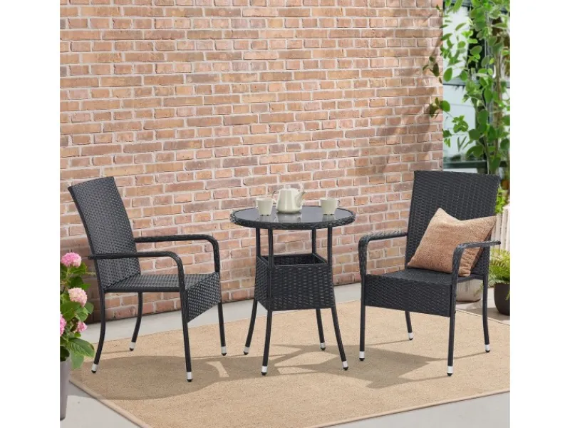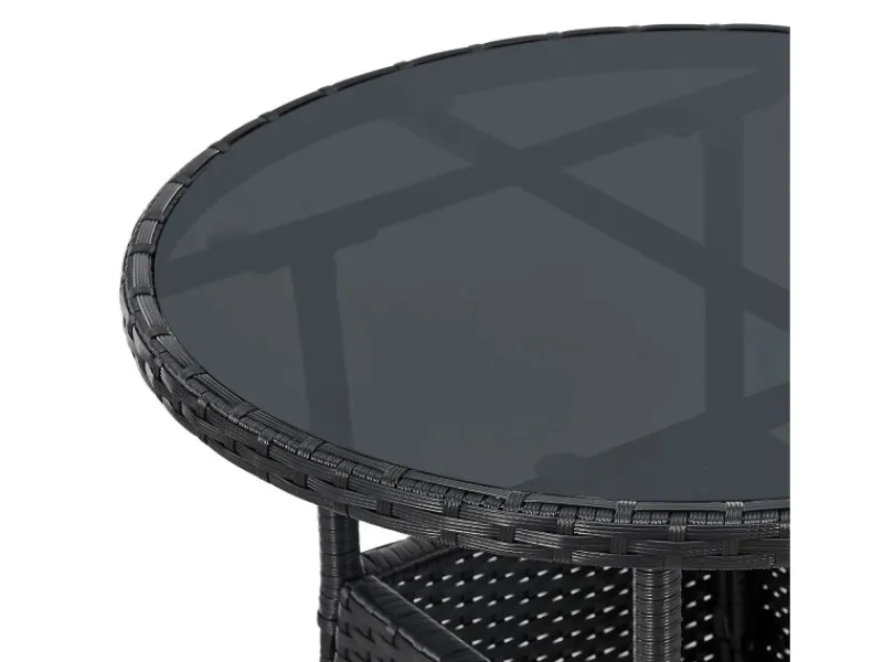 Aus wetterbeständigem Polyrattan, mit einem pulverbeschichteten Stahl-Gestell und einer Platte aus Sicherheitsglas, ist der Tisch widerstandsfähig und langlebig.