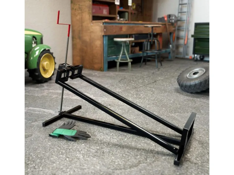 Zum einfachen Aufbewahren kann der Traktorheber bei Nichtgebrauch sehr platzsparend auf wenige Zentimeter zusammengeklappt werden.