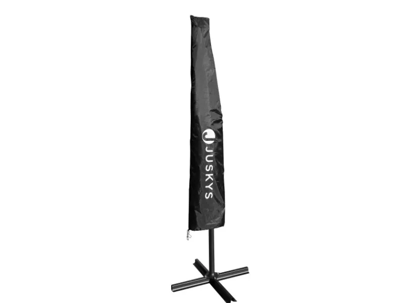Schirmständer, Freiarm und Dachstreben sind aus pulverbeschichtetem Stahl gefertigt. Die in Grau gehaltene Beschichtung schützt die stabile Stahlkonstruktion vor äußeren Einflüssen. Für eine lange Lebensdauer dient die Hülle mit Reißverschluss als Schutz vor Regen, Schmutz und Sonne.
