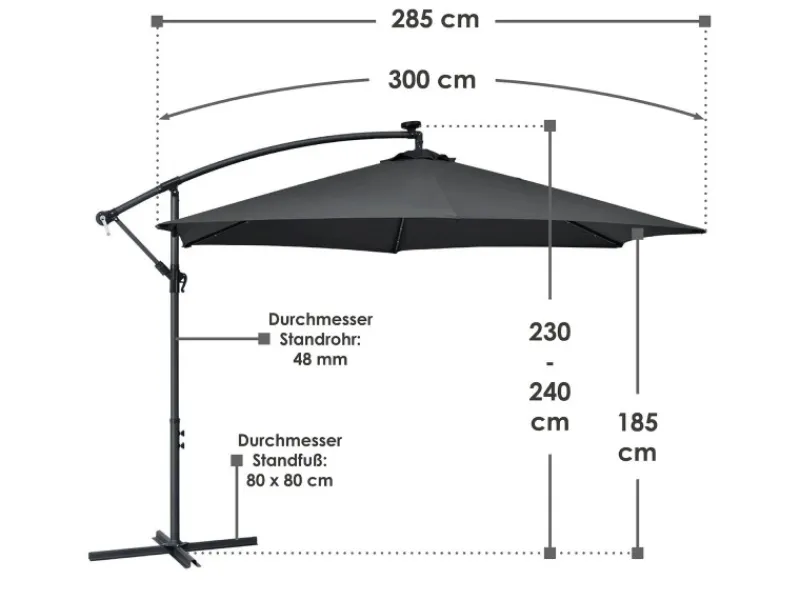 – Schirmdurchmesser: 285 cm