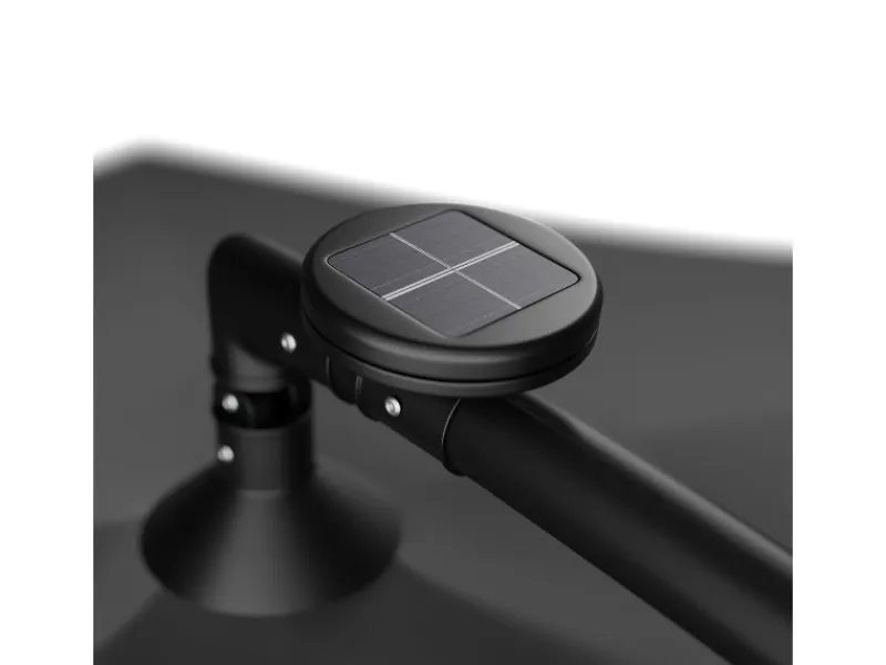 Die 24 im Schirm verbauten LED Lampen verwandeln Ihren Außenbereich bei Dunkelheit in ein idyllisches Plätzchen. Die Lampen werden über ein Solar-Modul inkl. Akku mit Strom versorgt.