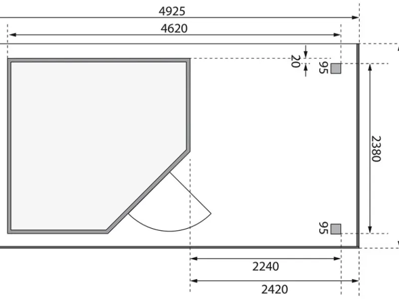 Sockelmaß Haus ohne Außenfläche B x T: 462 x 242 cm