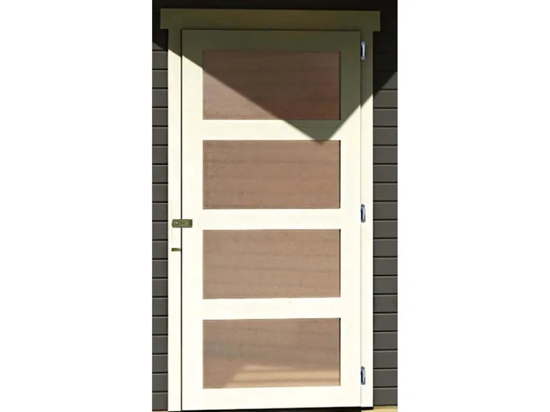 Das Gartenhaus ist aus lackiertem Holz im Steck- & Schraubsystem gefertigt. Die Lackierung schützt das Haus vor Witterungseinflüssen und verleiht dem Gartenhaus eine langlebige ansprechende Optik. Für die Montage der Gartenlaube müssen Sie kein Profi-Handwerker sein. Dank des praktischen Steck-Schraubsystems kann die Montage problemlos durchgeführt werden und die einzelnen Teile lassen sich einfach verbinden. Das Gerätehaus verfügt über eine stabile Konstruktion, mit einer Wandstärke von 19 mm. Die maximalen Schneelast des Pultdachs liegt bei 75 kg/m. Die Dacheindeckung ist separat erhältlich.