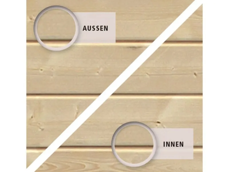 Das Gartenhaus ist aus unbehandeltem Holz im Steck- & Schraubsystem gefertigt. Durch die naturbelassene Oberfläche bleibt eine natürliche Optik mit Holzmaserung erhalten. Zum Schutz vor Witterungseinflüssen sollte die Oberfläche individuell mit einer Lackierung oder Lasierung veredelt werden. Für die Montage der Gartenlaube müssen Sie kein Profi-Handwerker sein. Dank des praktischen Steck-Schraubsystems kann die Montage problemlos durchgeführt werden und die einzelnen Teile lassen sich einfach verbinden. Das Holz-Gartenhaus verfügt über eine robuste Konstruktion, mit einer Wandstärke von 14 mm. Die maximalen Schneelast des — liegt bei 75 kg/m. Die Dacheindeckung ist separat erhältlich.