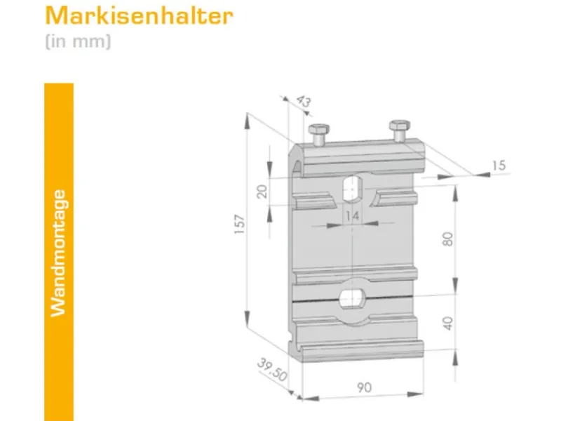 Markisenhalter für die Wandmontage und eine 140 cm lange Handkurbel gehören zum Lieferumfang.