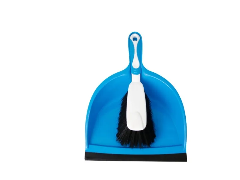 Die OBI Kehrgarnitur mit gummiertem Griff hat eine Schaufel mit Lippe zur Aufnahme von Staub und Krümeln. Die Kehrgarnitur ist aus Polypropylen und hat die Maße 325 mm x 220 mm x 85 mm.
