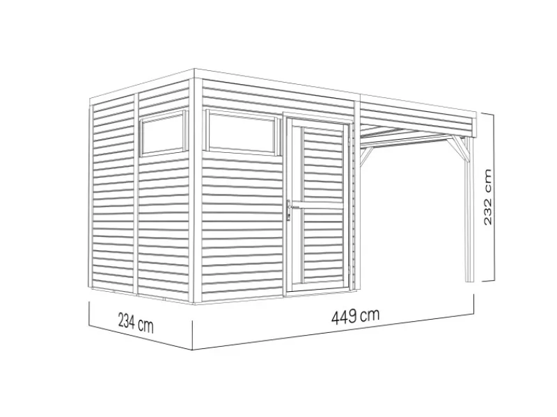 | Breite Sockelmaß inkl. überdachte Außenfläche | 449 cm |