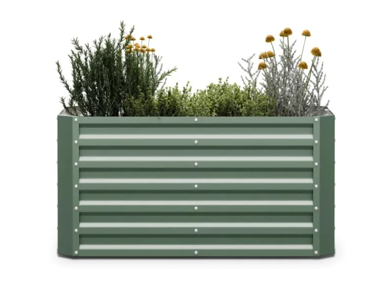 Eigene Anzucht: großflächiges Hochbeet zum Anbau von Blumen, Kräutern und Gemüse