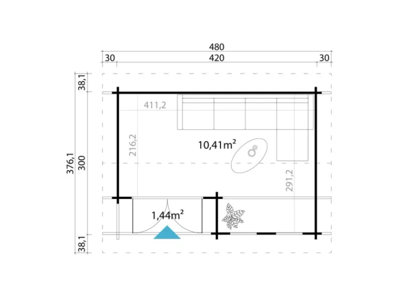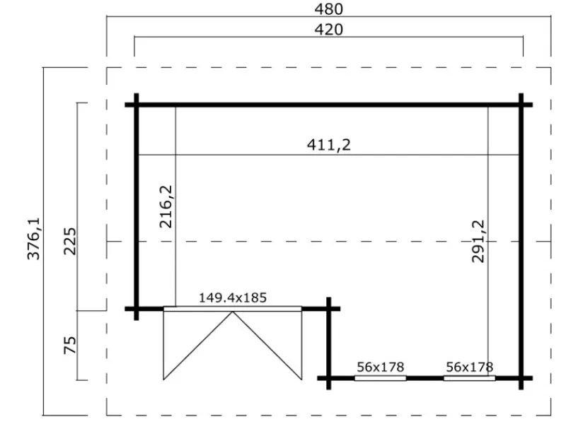 | Tiefe inkl. Dachüberstand | 376,1 cm |