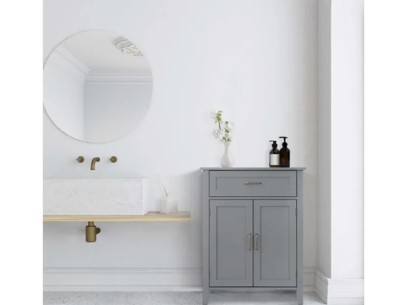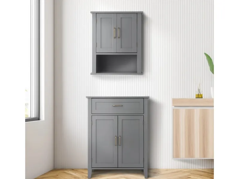 Stil: Dieser Mercer-Badezimmerschrank aus Holz verfügt über ein elegantes graues Finish