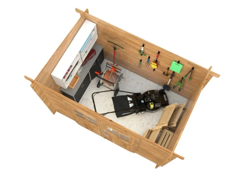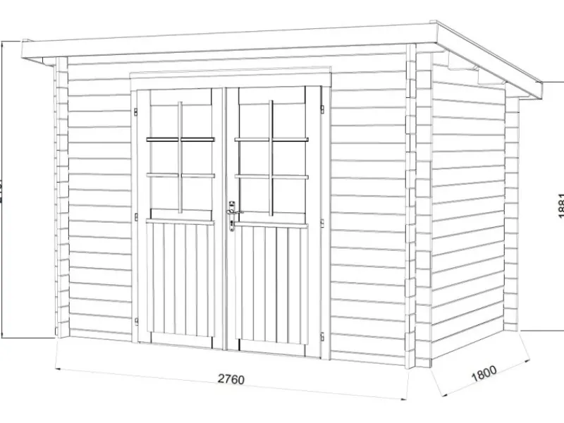 Die Tür hat eine 4 mm-Einfachverglasung mit aufgesetzten Sprossen. Zum Bausatz gehören 16 mm Dachbretter, Sturmleisten und Montageset. Das Gartenhaus wird bereits ab Werk in braun kesseldruckimprägniert geliefert, sodass kein aufwendiges Streichen mehr notwendig ist. Optional sind ein 19 mm starker Fussboden, sowie Dachpappe, Schindeln und Regenrinne erhältlich.