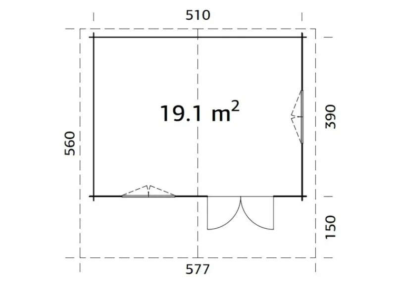 Sie werden staunen wie viel Platz Sally auf einer Grundfläche von 510 cm x 390 cm bietet und auch der Dachüberstand von 150 cm bietet noch Schutz vor Wind und Wetter. Inklusive Dachüberstand beträgt die gesamte Dachfläche 35,3 m², die mit 19 mm starken Nut- und Federdielen versehen wird. Mit einer Firsthöhe von 267 cm und einer Traufenhöhe von 205 cm wird Sally der neue Mittelpunkt in Ihrem Garten.