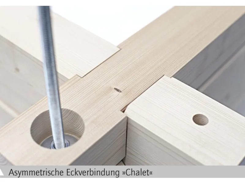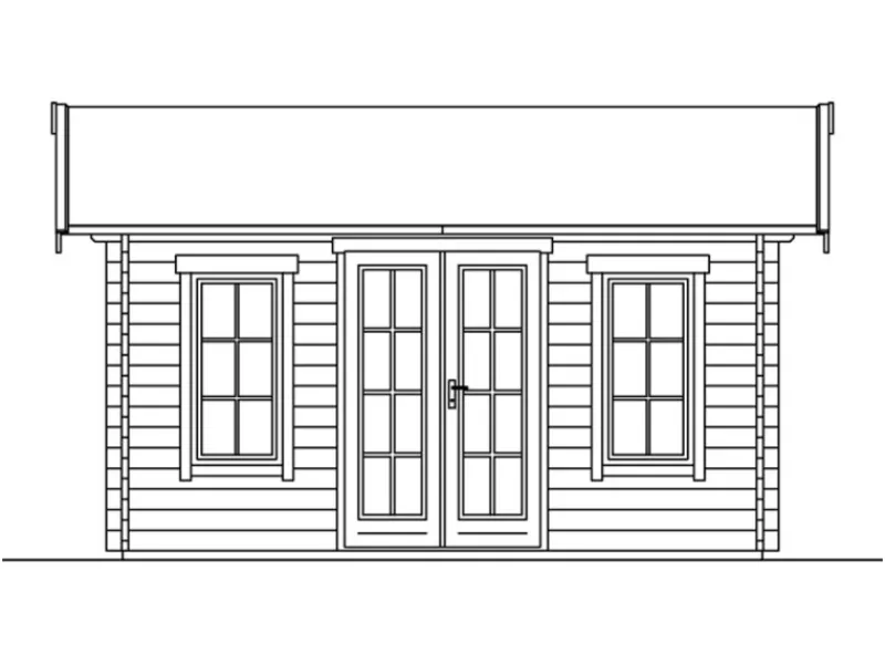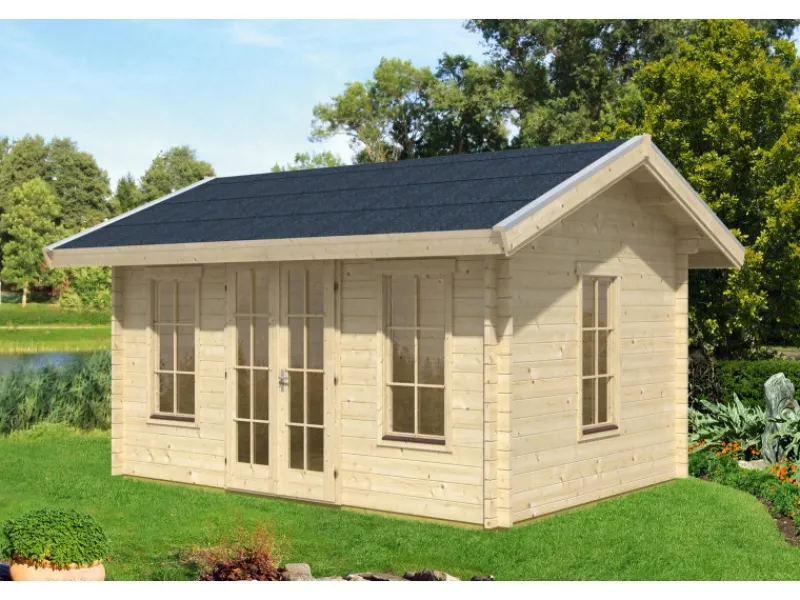 Dach aus 19 mm Profilschalung mit Nut und Feder, Konterlattung und Lattung für die Eindeckung mit Dachziegeln. Dachneigung 23 Grad, Dachüberstand umlaufend 40 cm. Die Dachziegel sind nicht im Lieferumfang enthalten und bauseits zu beschaffen.
