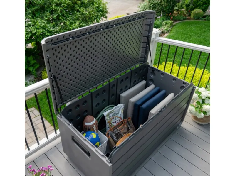 Wenn du deine Gartenutensilien schnell und jederzeit griffbereit verstauen möchtest, ist die Gartenbox von Lifetime die perfekte Wahl für dich. Mit ihrem modernen Design wird die vielseitige Kissenbox nicht nur zu einem praktischen Aufbewahrungshelfer, sondern auch zu einem stilvollen Blickfang in deinem Garten. Nutze die Vorteile des flexiblen Lagerns und setze ein Statement in Sachen Wohnstil.