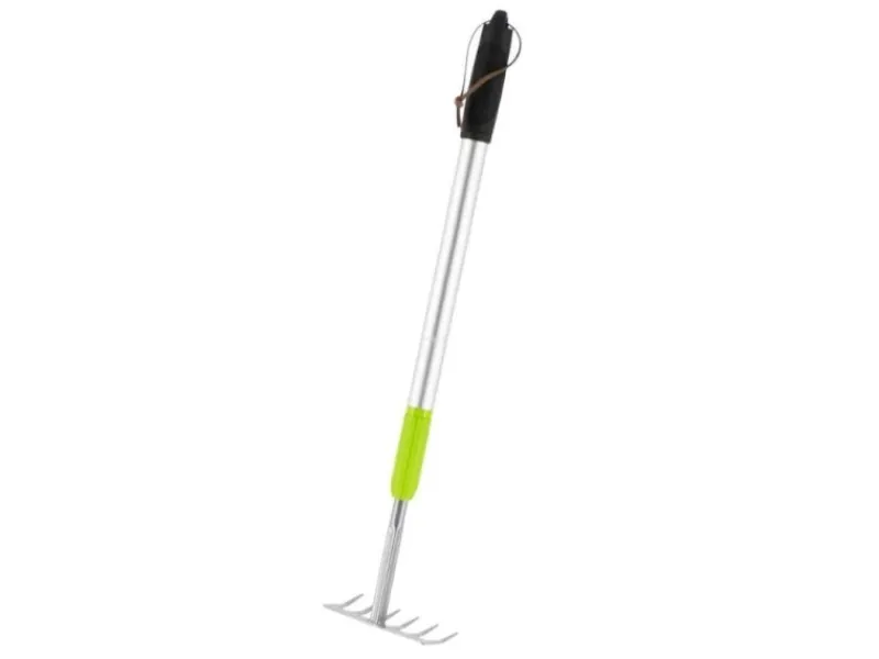 Durch die schmale Arbeitsbreite erreicht der kleine Rechen auch enge und schwer zugängliche Stellen mühelos, ohne dabei die Wurzeln der Pflanzen zu beschädigen.