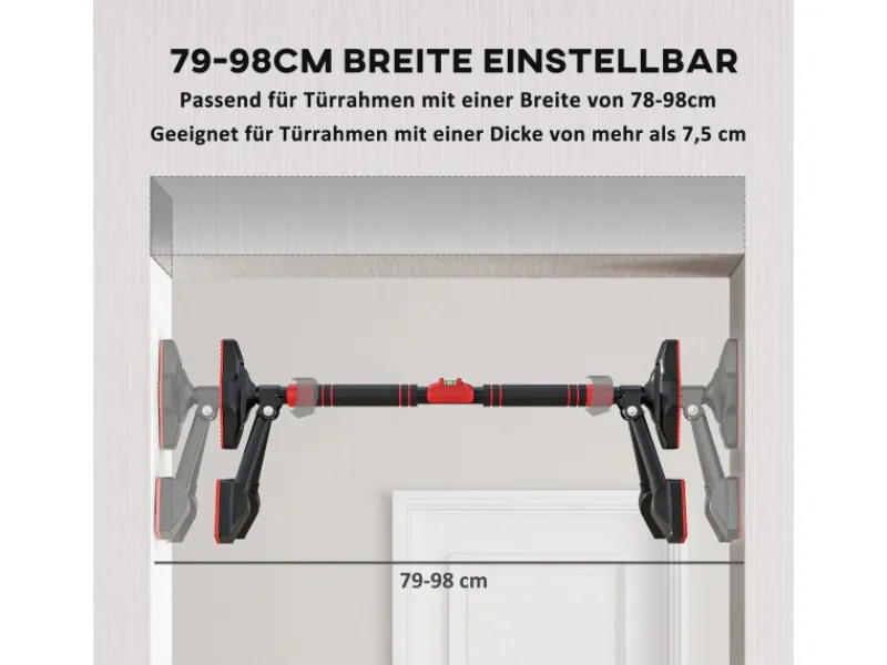 Produktdaten des Klimmzugstanges Gesamtmaße 79-98L x 7,5B x 15H cm, Montage erforderlich.