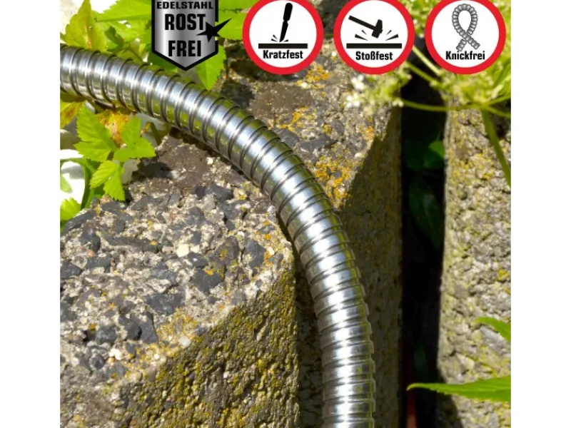Extrem flexibel ohne Verdrehen & Verknoten.Der Metallschlauch gleitet um Hindernisse und Kanten.