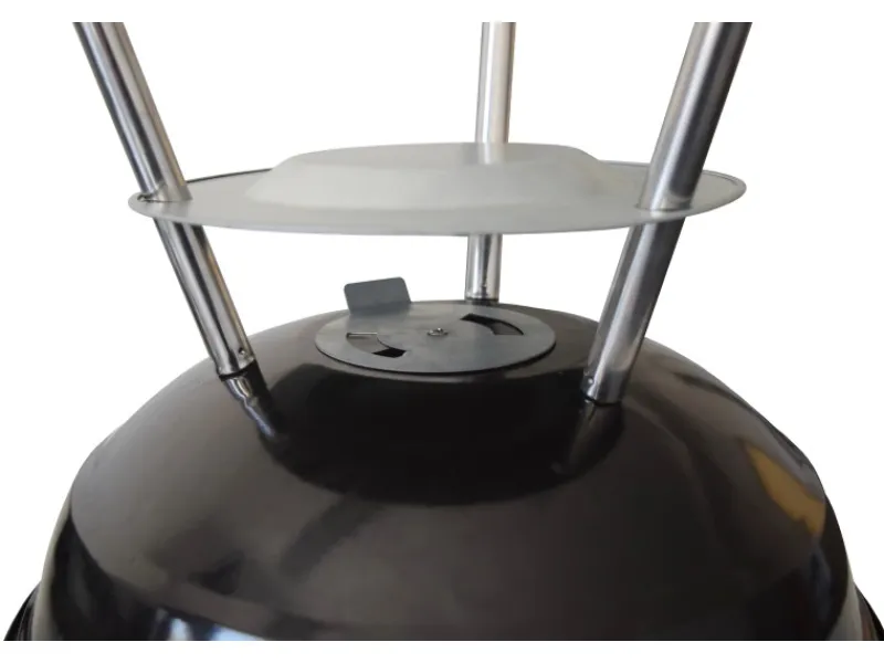 Der mobile Holzkohlegrill von Activa macht das Grillen überall möglich. Egal wo Sie sind, der Kugelgrill läßt sich mit dem parktischen Tragegriff am Deckel problemlos mitnehmen. Der Deckel wird mit Deckelclips sicher am unteren Teil befestigt. Die Lüftungsregler im Deckel ermöglichen eine optimale Temperaturkontrolle. Mit den Lüftungsregler an der Feuerwanne können Sie den Zug für die Kohle einstellen, weit offen wird die Kohle wird angeheizt bis sie weiß ist, fast geschlossen die Kohle hat die optimale Grilltemperatur und das Grillen kann beginnen. Durch den zusätzlichen Aufangteller unter der Feuerwanne werden glühende Kohle/ Ascheteile aufgefangen.
