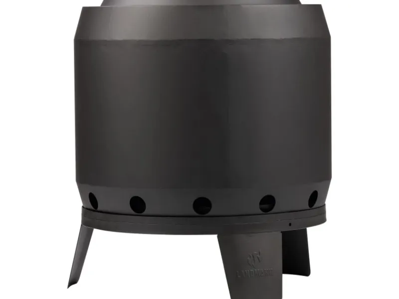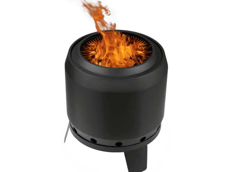 Sein doppelwandiger Aufbau mit zusätzlichen Belüftungslöchern sorgt dafür, daß die einströmende Luft im Zwischenraum erhitzt wird, und sowohl seitlich als auch über den oberen Rand in den Feuerkorb abfließen kann. Dies sorgt für ein besonders heißes und raucharmes Abbrennen des Brennmaterials.