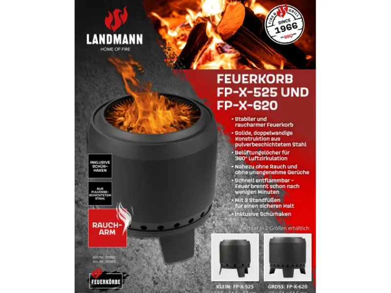 Verbringen Sie eine gemütliche Zeit mit Freunden am Feuerkorb ohne störenden Rauch, dank des kleinen, nahezu rauchfreien Feuerkorb von Landmann.