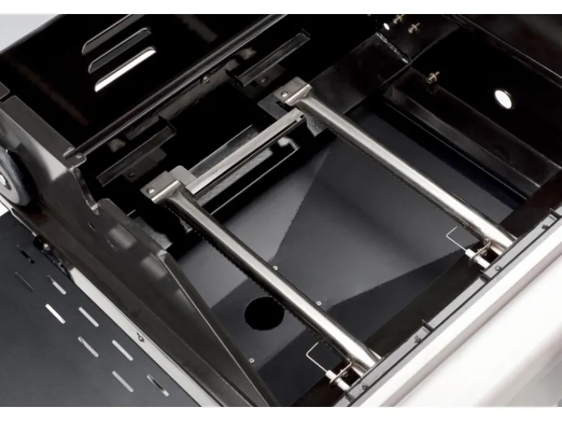 Die beiden Seitenflächen bieten ausreichend Platz. Stellen Sie Ihre Gewürze, Zutaten oder Geschirr bequem auf der zusätzlichen Arbeitsfläche ab. Die zwei Edelstahl-Brenner mit einer Leistung von je 3,5 kW sind stufenlos regulierbar. Dank der doppelwandigen Haube gelingt die Hitzeisolierung zuverlässig. Die emaillierte Feuerschale ist außerdem sehr hitzebeständig.