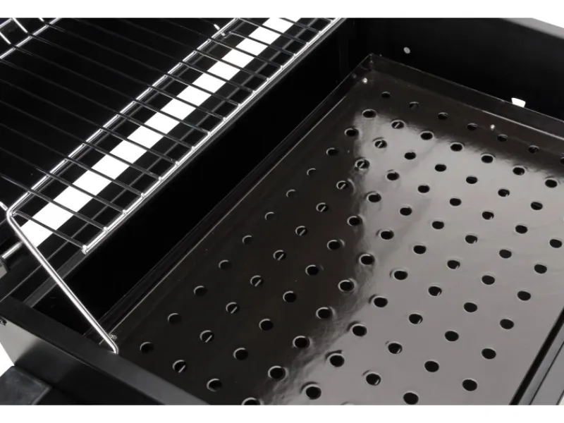 Die Reinigung findet über der herausnehmbaren Ascheschublade statt und die Feuerraumklappe vereinfacht das Nachlegen des Brennstoffs. Mit den abklappbaren Seitentischen, sowie den 2 Rädern kann der Landmann Dorado einfach transportiert und platzsparend verstaut werden.