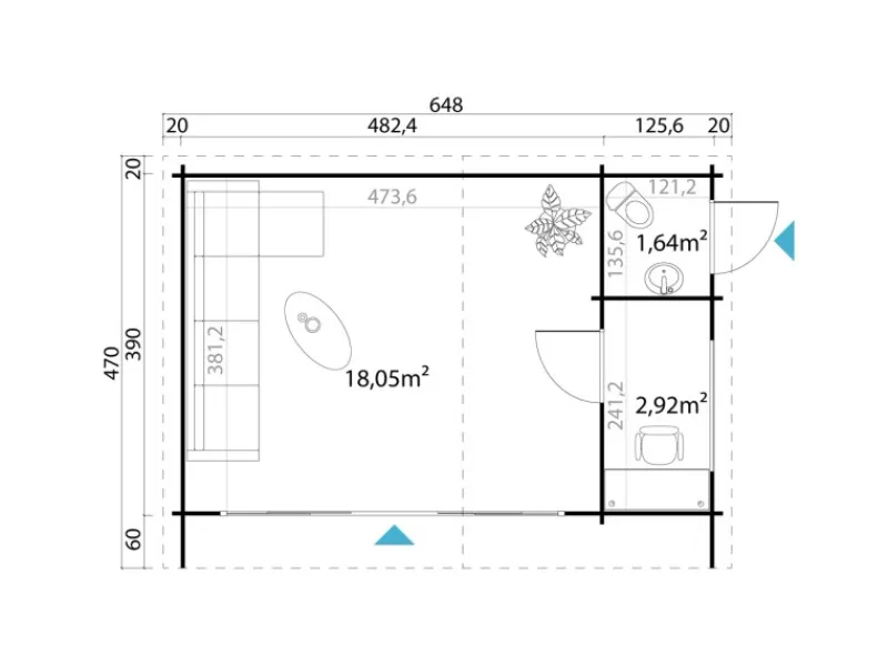 | Tiefe inkl. Dachüberstand | 470 cm |