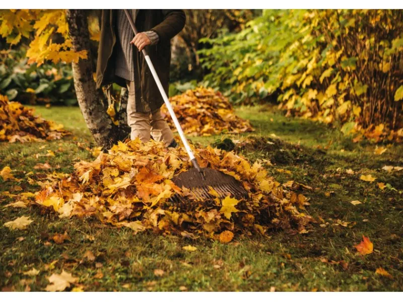 Zum Zusammenharken von Laub, Unkraut und Grasschnitt